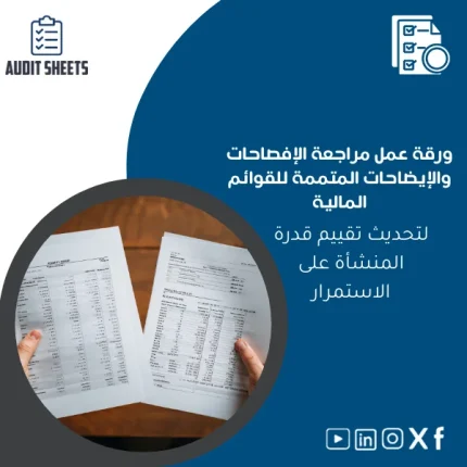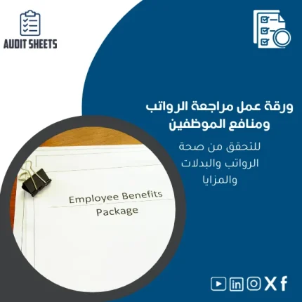 ورقة عمل مراجعة الرواتب مصممة خصيصاً لمكاتب المراجعة والمحاسبة والمراجعين القانونيين لتسريع فحص صحة الرواتب والبدلات والامتثال لمقتضيات الضريبة والتأمينات وفقاً لمتطلبات ISA وSOCPA — نموذج احترافي قابل للتعديل يدمج فحوصات الرقابة، خطوات الاختبار، وجداول الإثبات ضمن ملف تدقيق متكامل.