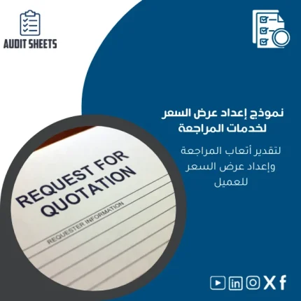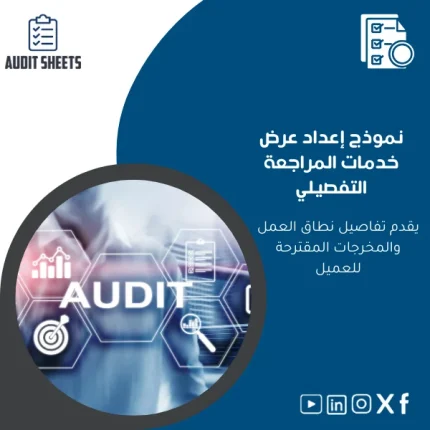 نموذج عرض خدمات المراجعة التفصيلي يوضّح نطاق العمل والمخرجات المقترحة والرسوم المتوقع تحصيلها، مصمّم خصيصًا لمكاتب المراجعة والمحاسبة والمراجعين القانونيين الذين يطبقون معايير ISA وSOCPA. منشور في 2025-12-02 — جاهز للاستخدام المباشر كتقنية مهنية لتقليل وقت إعداد المقترحات وزيادة وضوح اتفاق العمل مع العميل.