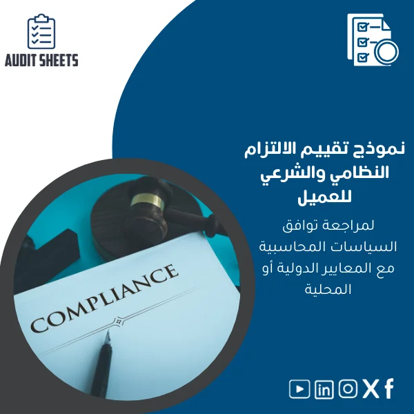 أداة عملية ومهيكلة لتقييم مدى التزام العميل بالأنظمة والقوانين والضوابط الشرعية ذات الصلة قبل الارتباط أو تجديد العقد — مصمّم خصيصاً لمكاتب المراجعة والمحاسبة والمراجعين القانونيين المطبقين لمعايير ISA وSOCPA.