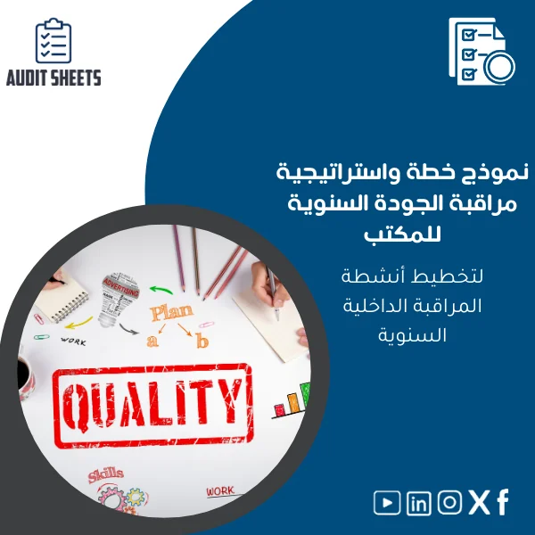 - المحتوى المضمن: نموذج خطة سنوية، جداول زمنية، قوائم تحقق للعينات، تقرير مراقبة الجودة، مصفوفة تقييم المخاطر، نموذج متابعة الإجراءات التصحيحية.