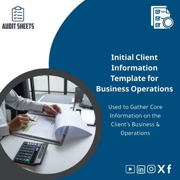 This Initial client information template turns a time‑consuming, inconsistent intake step into a single, defensible source of truth for the audit engagement. It delivers: